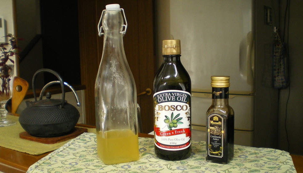 サラダに振りかけるドレッシングは、市販のものを使うのは3日に1度くらい。日替わりで、バルサミコ酢、レモン酢とオリーブオイルを使っている。最近は味に慣れてきた。