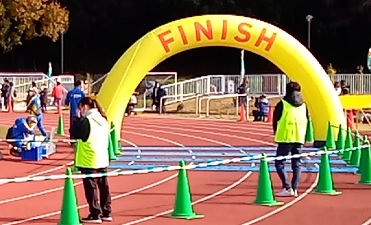 私だけでなく、すぐ前を走っていたシニア夫婦ランナーもあたふたしていた。子供達を避けて、競技場の3コースくらいを走ってゴール。グロスタイムは1時間11分16秒だった。