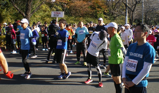 今年はすでに八街マラソンの10kmを走っているし、昨年来10kmは4回目、5kmを合わせると6回目と場数を踏んできたので、昨年ほどには緊張しない。10月・11月に走った距離は合計263km、昨年の133kmのほぼ倍と、トレーニングも積んでいる。