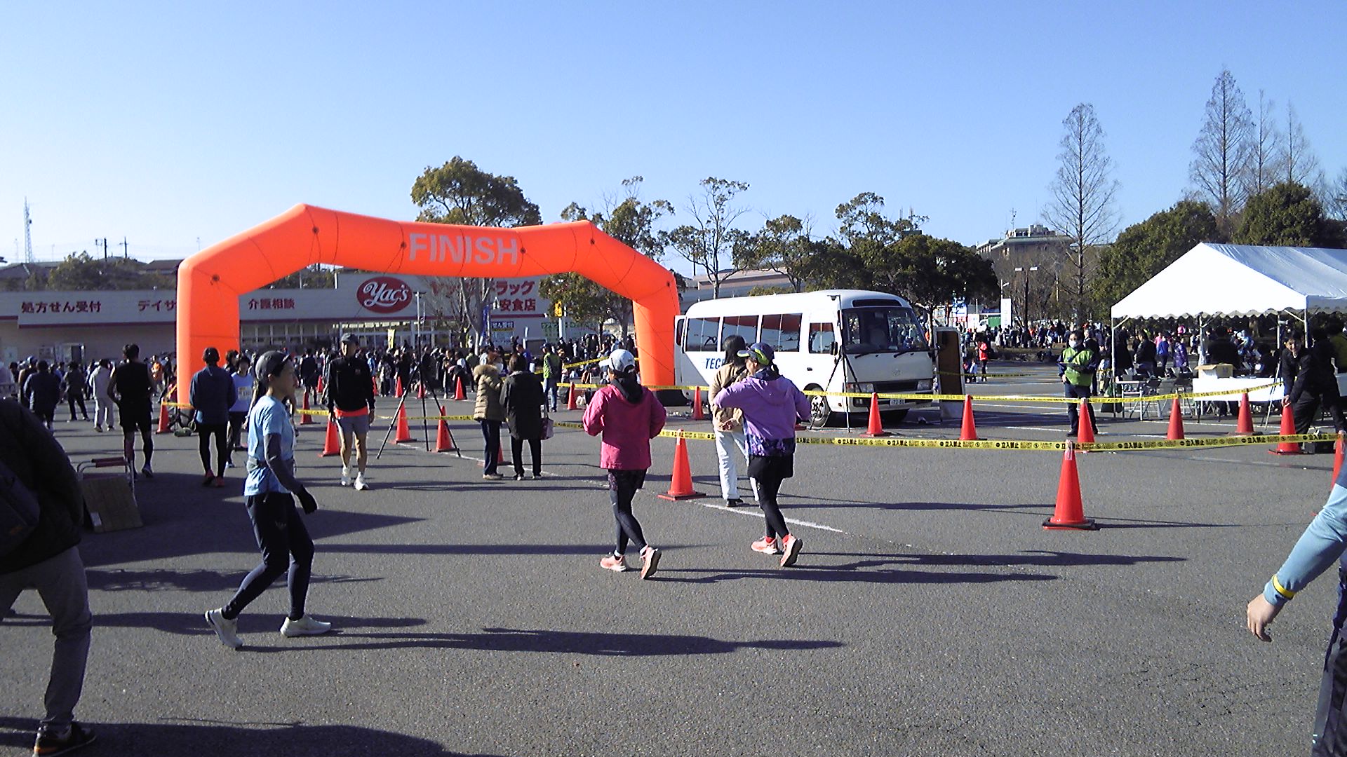その点で救いになったのは、残り1km付近にいた監視員の方が「大丈夫ですか」「ゆっくりマイペースで」と声かけしていたことである。私も「大丈夫?」と声かけされたので、右手を上げて挨拶した。