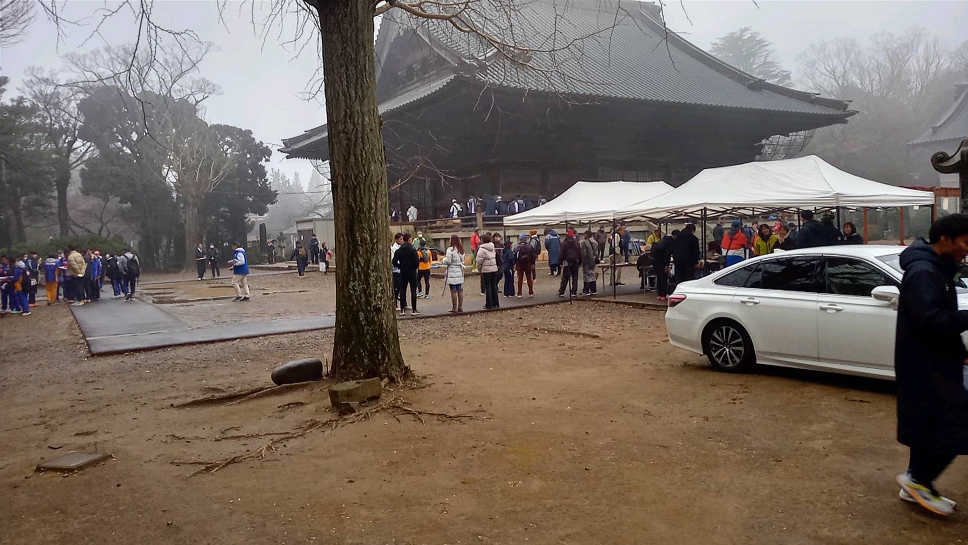市役所の敷地内はごった返している。一応、休憩テントはあるけれど一杯で、みんな外で待機している。まあ、コロナやインフルエンザのリスクを考えればその方がよさそうだ。私も、大木のあたりで準備運動。そうしている間に、5kmのスタートの放送がある。