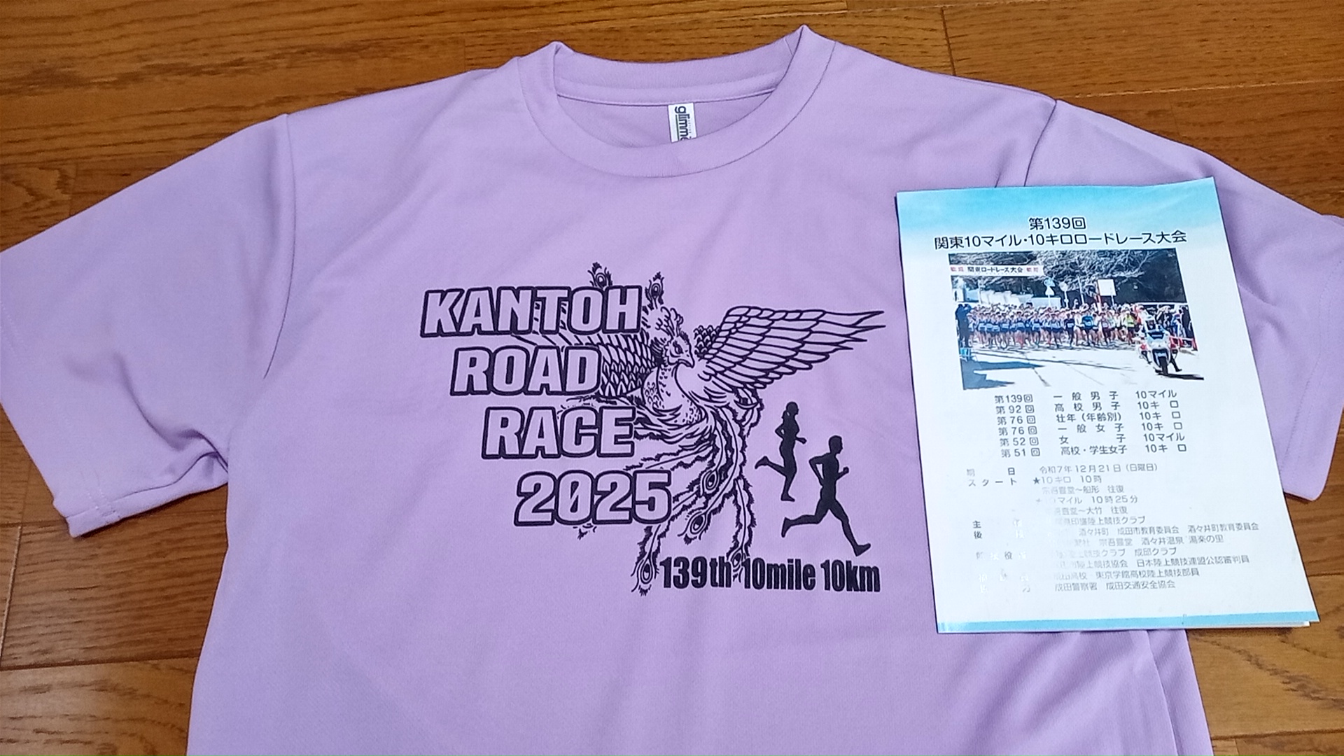 参加賞のランTとプログラム。サイズは以前選べなかったそうだが、「MとLどちらがいいですか?」と選ばせてくれる。