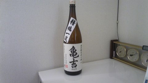 最近品薄となっている亀吉。グレードはいろいろありますが、普通の「特別純米辛口酒・精魂一途」が個人的には一番好きです。