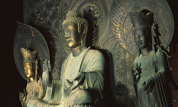 4月8日はお釈迦様と同じと小さい頃言われたものだが、お釈迦様は出家して修行し悟りを開いた方なので、生き方としては共通点があるかもしれない。(写真:法隆寺HPより釈迦三尊像)