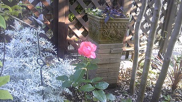 リビングから見えるバラ一輪。ジャルク・フランスという名前だそうだ(家の奥さんが言うことなので、あまり信用おけないが・・・)