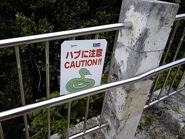 どこかで使おうと思っていたハブ注意の写真。沖縄ではいろんなところに書いてあります。