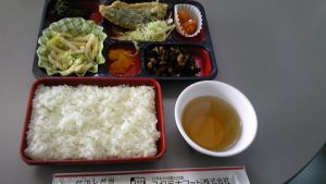 ポリテクセンターのお弁当。1食400円。日替り弁当の他に、から揚げ弁当、エビフライ弁当、カレー弁当などがある。