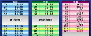 JRAライブ中継。レース中継以外の時間はこうして発走時刻が表示される。番宣やCMが流れないのでストレスがなくなった。画質も悪くない。